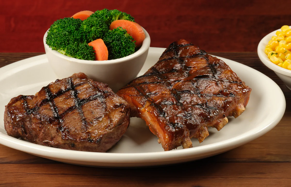 Our lean, juicy sirloin steak at a great value along with slow cooked ribs in a unique blend of seasonings and our signature BBQ sauce
